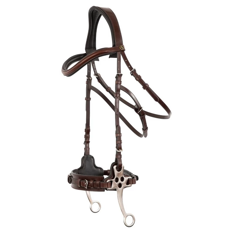 This Hackamore bridle contains cheeks of stainless steel (152 mm) and features an extra soft padding at the noseband.