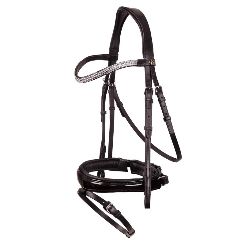 (approx. 4 cm) with patent leather. The anatomically shaped noseband is round