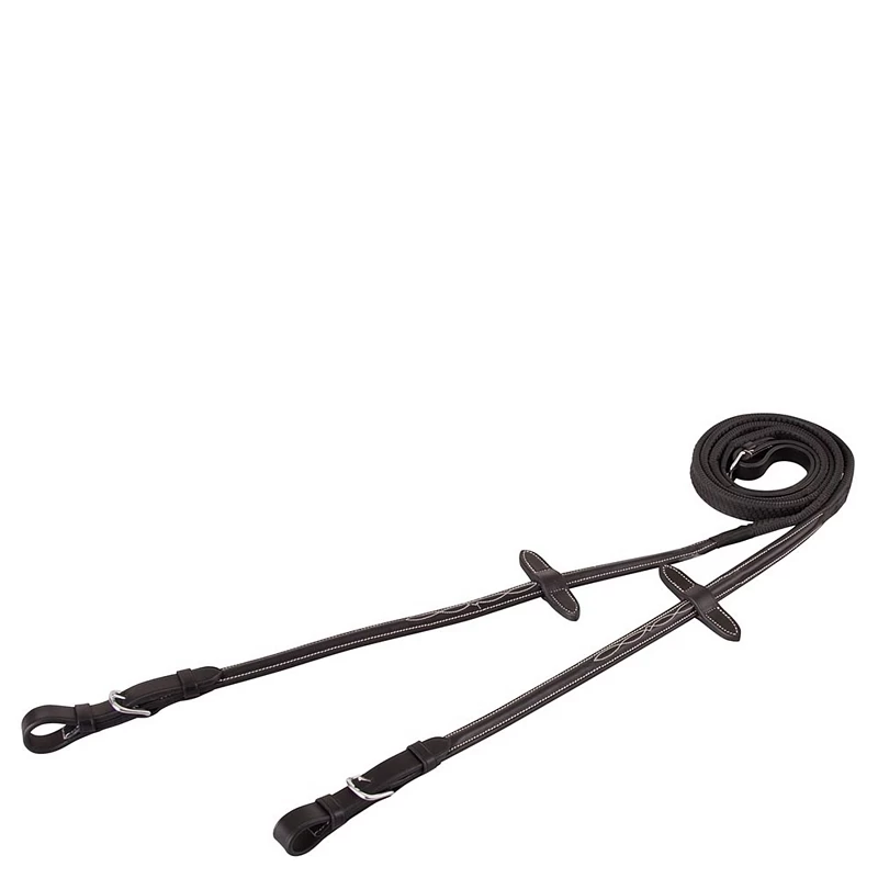 Eventa rubber grip reins with nylon insert, rein stops and round buckles. With cream stitching, 16 mm.