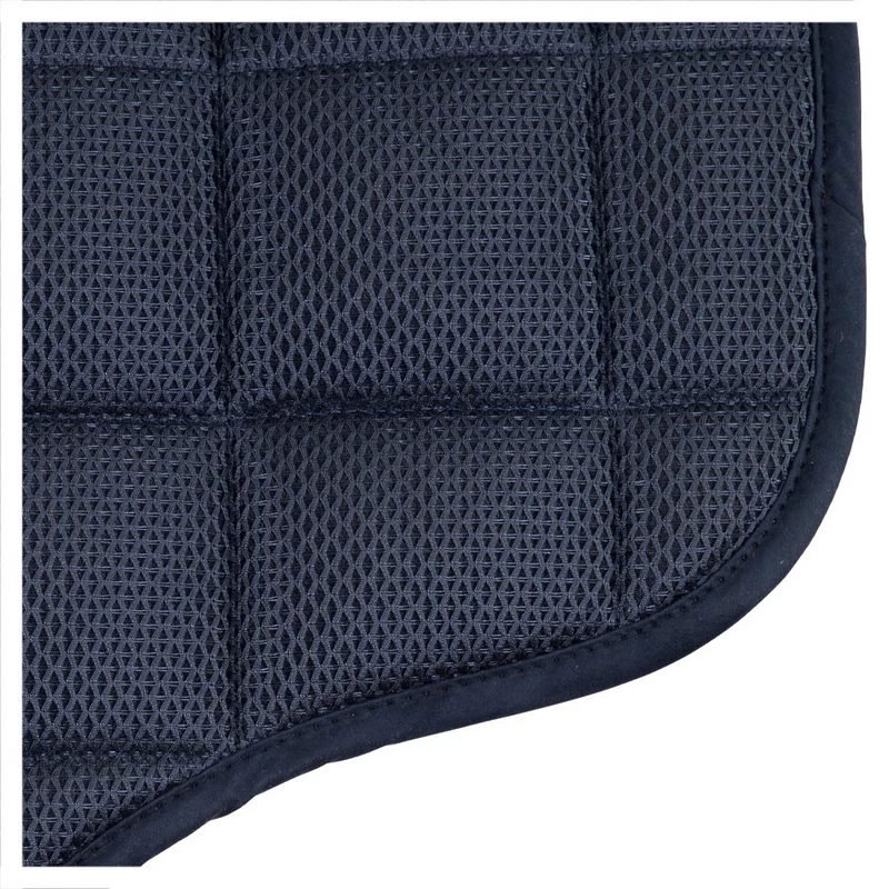 This extremely breathable saddle pad is made of 3D mesh and exudes style and technical advantages. The saddle pad features a filling of 340 g polyfill and a quick drying, cooling Coolmax® lining. The material prevents overheating and ensures an optimal air circulation. Its anatomically shaped back seam with cutback wither area reduces the risk of pressure on the spine and withers. The saddle pad has an elegant square quilting and provides girth loops and retaining straps with Velcro. The pad is reinforced under the girth loops.