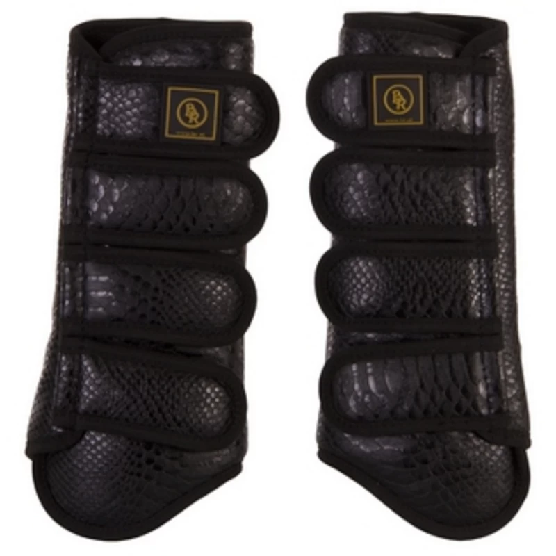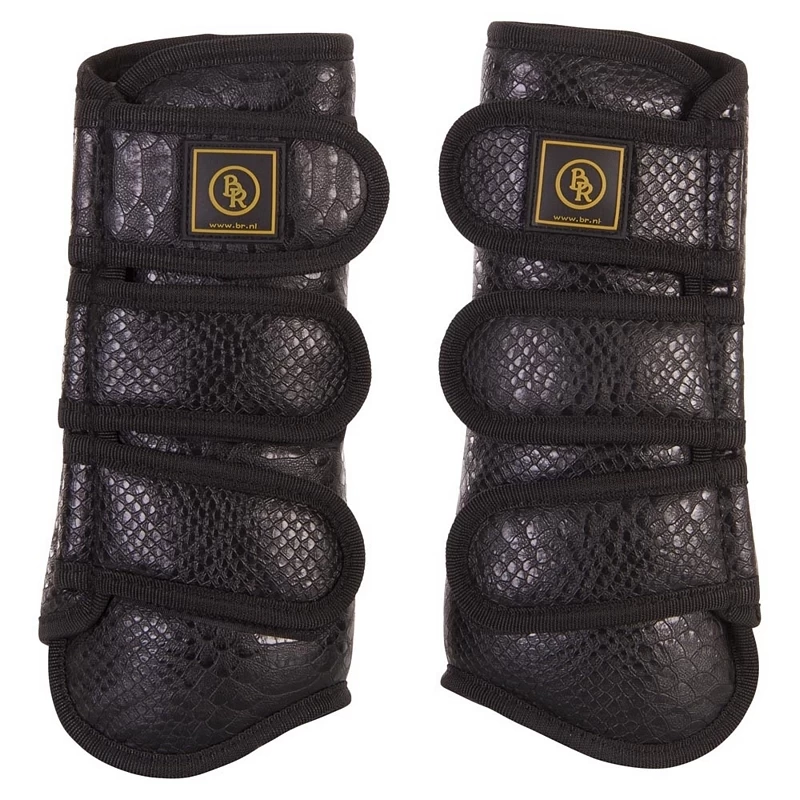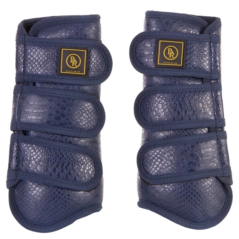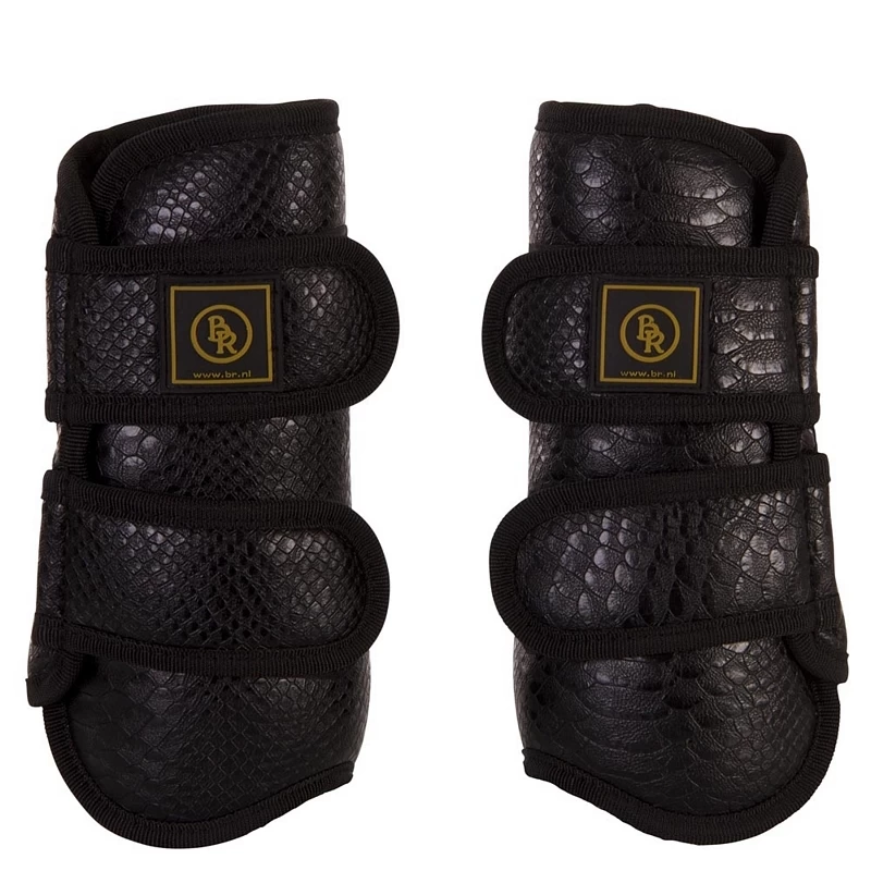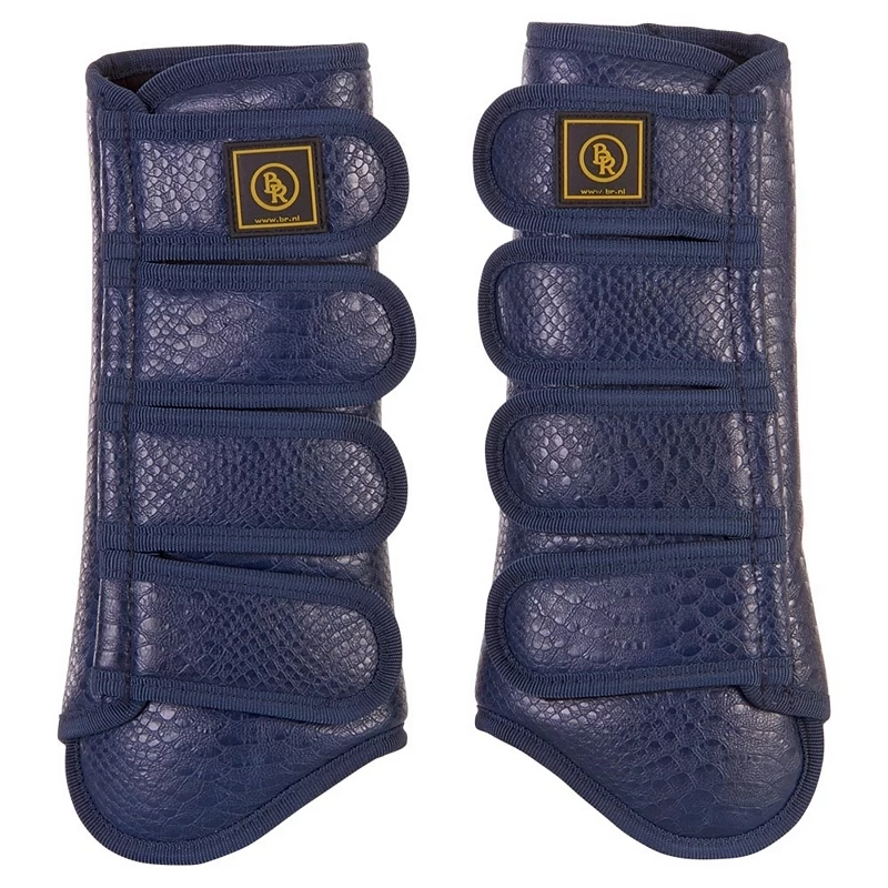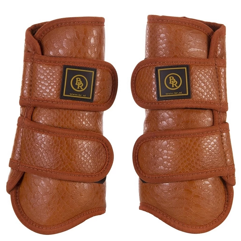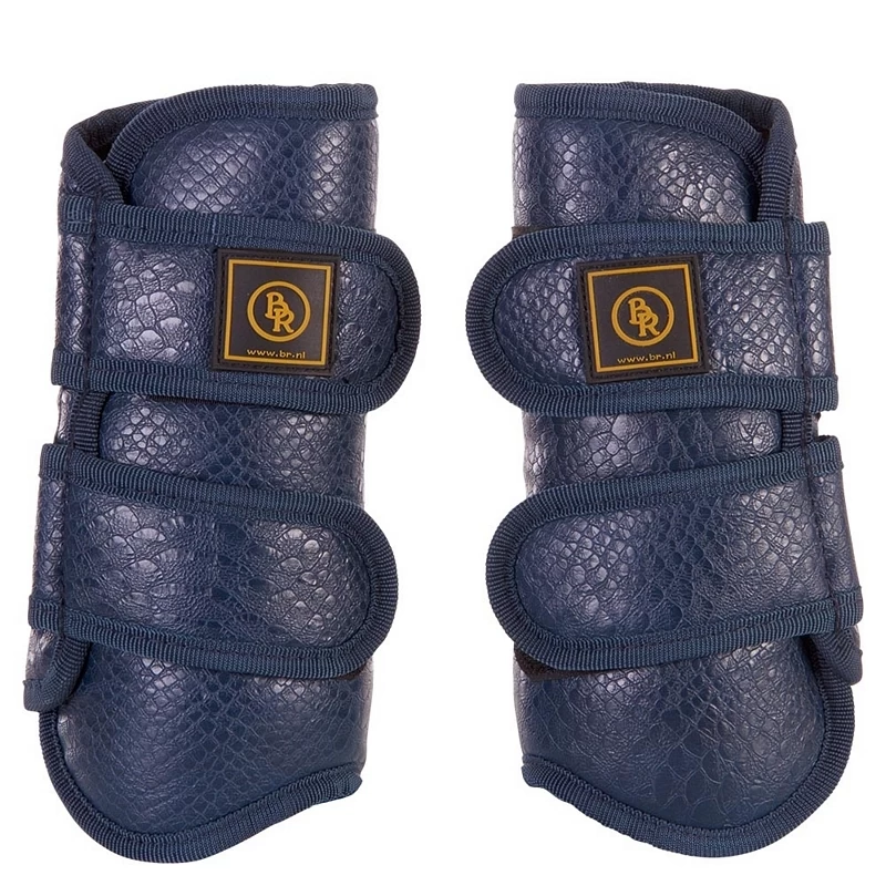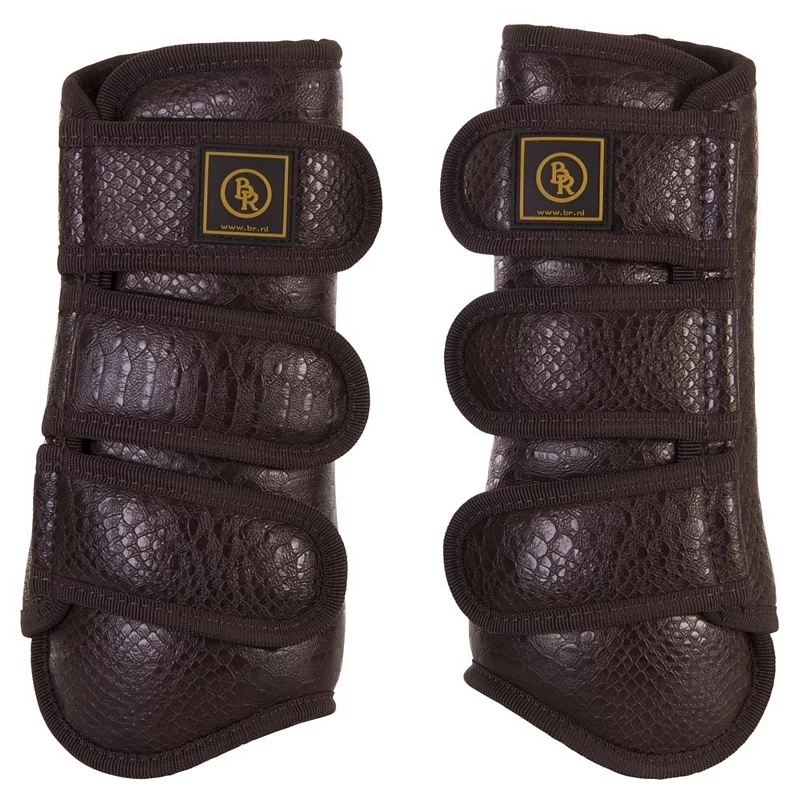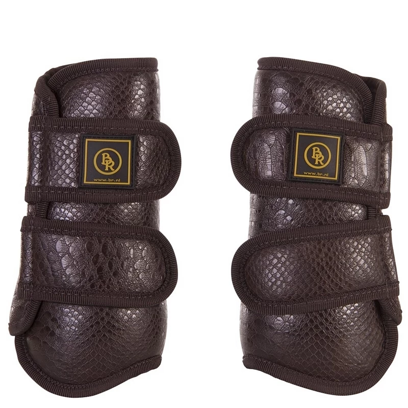 The BR tendon boot Pro Max Croco is made of synthetic leather featuring a crocodile print. This tendon boot features a strong, shock absorbing neoprene lining of 5 mm. The hard and preformed synthetic shell inside the tendon boot provides optimal protection of the horse’s leg.