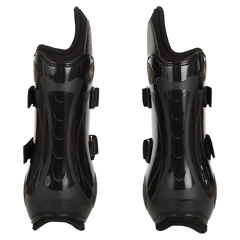 This innovative kneeboot has an extra neoprene part that runs over the inside of the leg for extra protection. The boots have a hard shell for optimal protection. Due to the form, the horse gains optimal freedom of movement. The ventilation holes at the side and back promote airflow, preventing the leg from overheating. Next to this, the boot is lined with breathable neoprene. The kneeboot has velcro closures without elastic and is allowed at all (FEI) competitions. Also highly suitable for young horses.