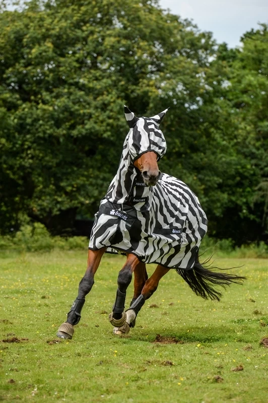 The Bucas Buzz-Off Zebra Full Neck is made from lightweight, fine mesh fabric