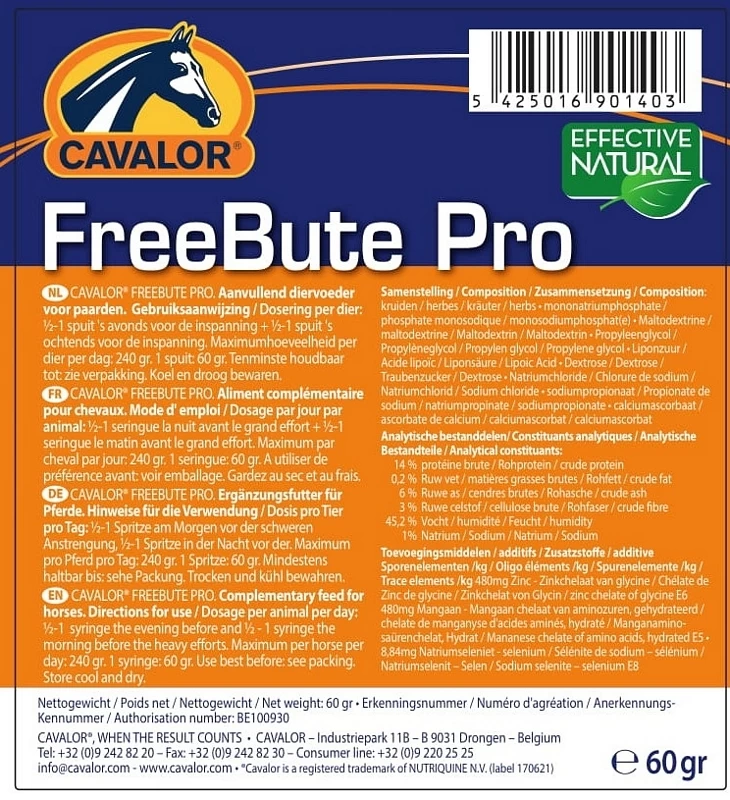 bioflavonoids. Being a natural product, Cavalor FreeBute Pro does not contain