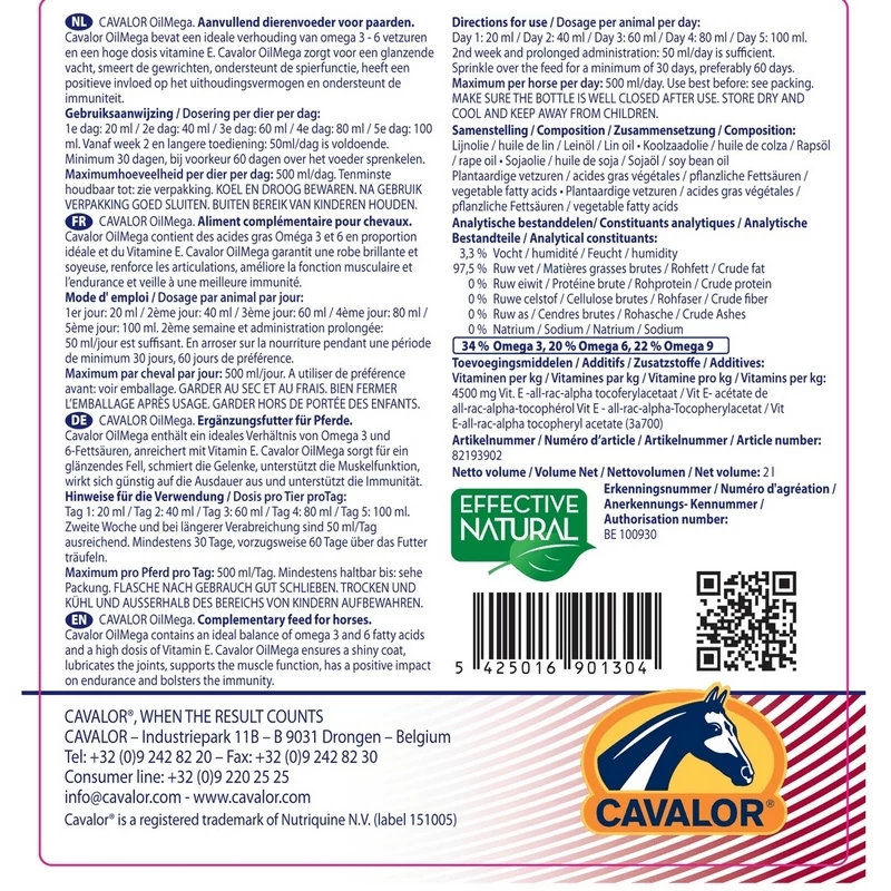 levels. Cavalor OilMega provides ingredients (specific fatty acids) that are