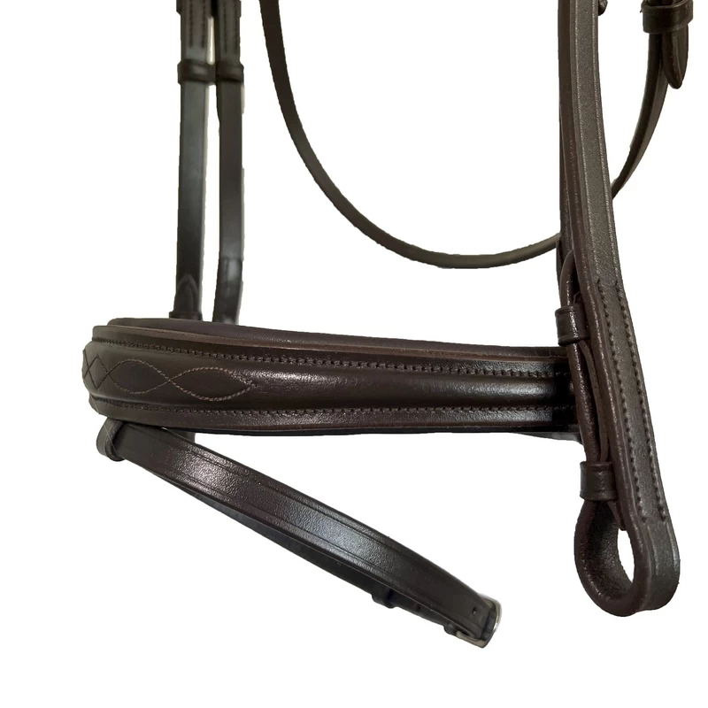 -The noseband tapers off to the side to leave enough room for the bit rings and
