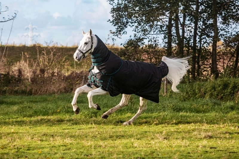 Separate neck cover with 150 g fill. Compatible with turnout rugs that feature D rings at the front. The neck is waterproof and easily attached with three clips.
