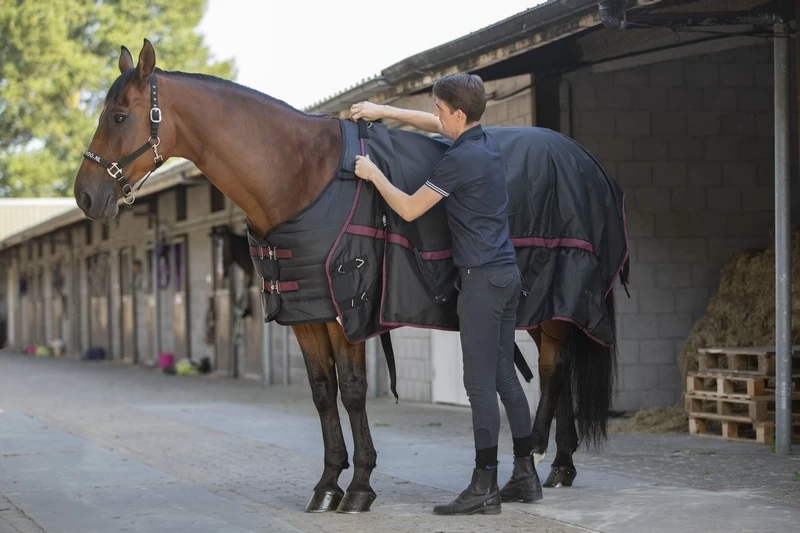 The stable and under blanket has a 150 gram filling. An ideal filling that can be combined very nicely with rain rugs or other outdoor rugs. As a 150 gram stable rug, it is ideal for the chilly spring or autumn season or for horses that get warm quickly. If you use the rug as an underblanket, you can make a perfect combination with your 0 gram rain blanket or give that extra layer under your winterrug when the nights are really cold.