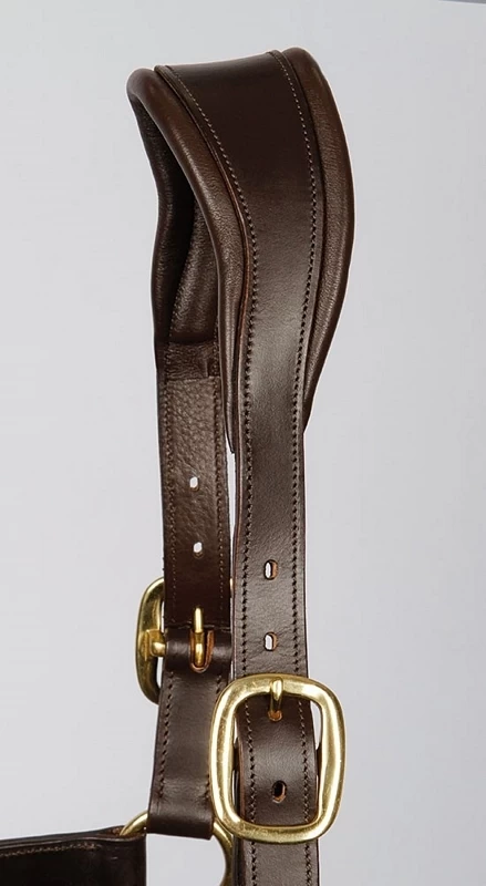 Luxury leather halter with anatomically-designed headpiece. Double-adjustable