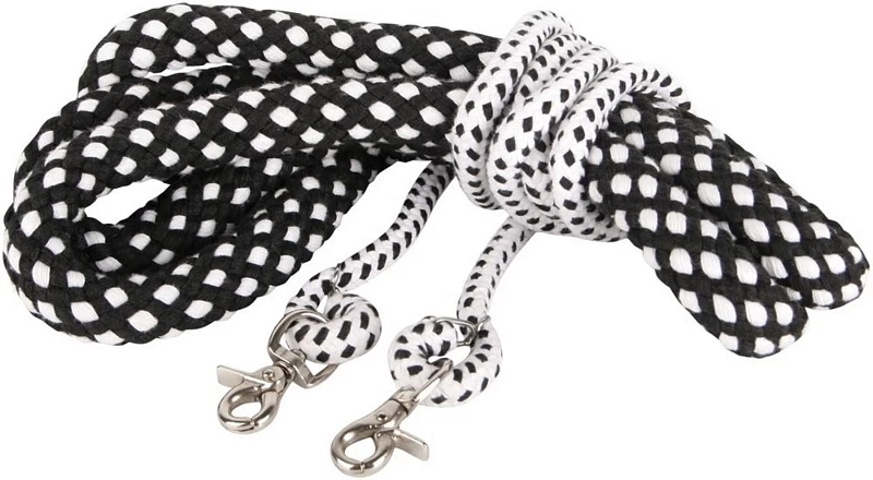 Helps to relax the horse’s back while lunging. Made of very soft cotton and strong polypropylene. The ring holds the ropes between the legs together. The lunging help is adjustable in length.