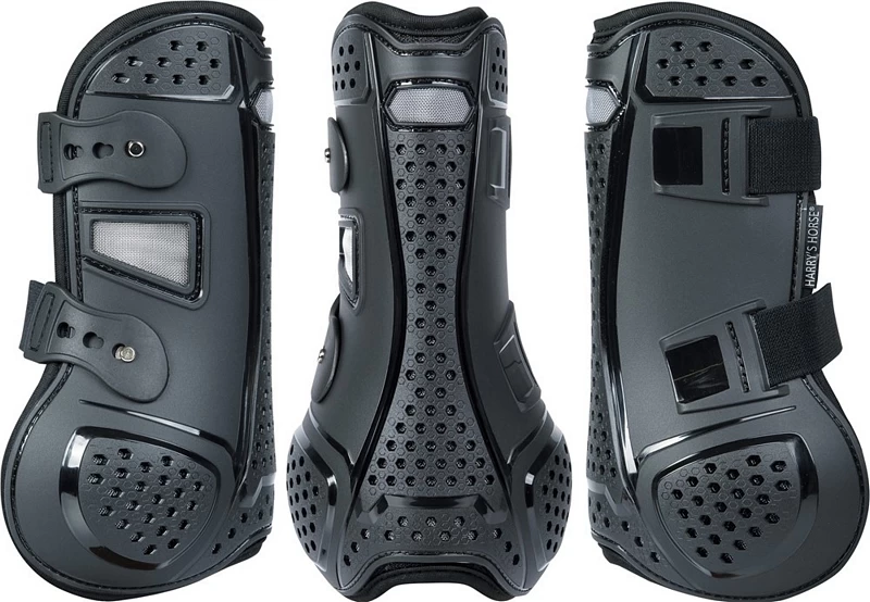 The flexible, light TPU material of the tendon protectors ensures perfect freedom of movement for the horse and protects against tapping. The lining is 6mm perforated TPG material. TPG is a super light, shock-absorbing