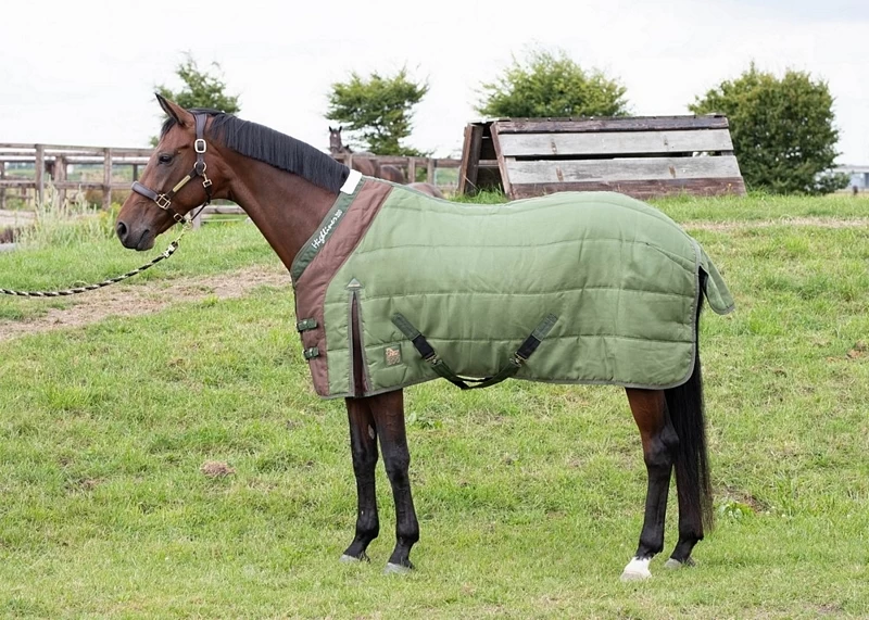 Stable rug Highliner with higher neck for a perfect fit. 300D Polyester, 200g polyfill filling, polyester lining, 2 front fastenings, tail flap, cross surcingles with elastic and detachable elastic leg straps.