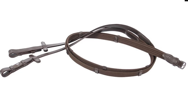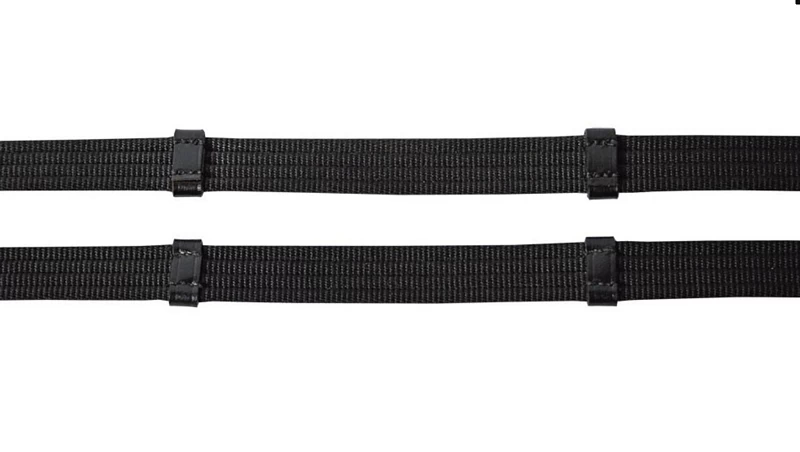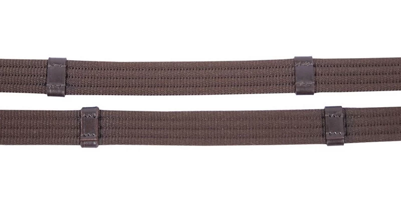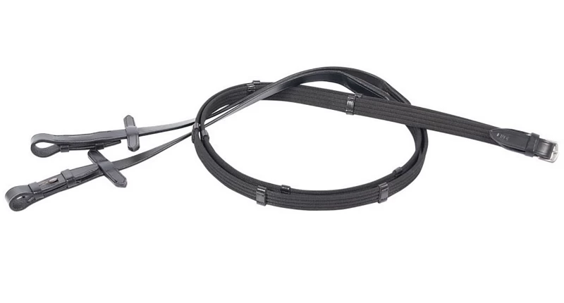 Web reins with leather stops and hook stud billets.