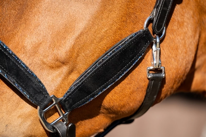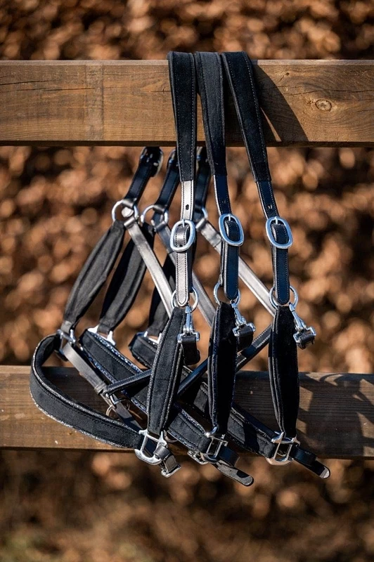Luxury combi halter of leather and super-soft velvet with gorgeous glittery