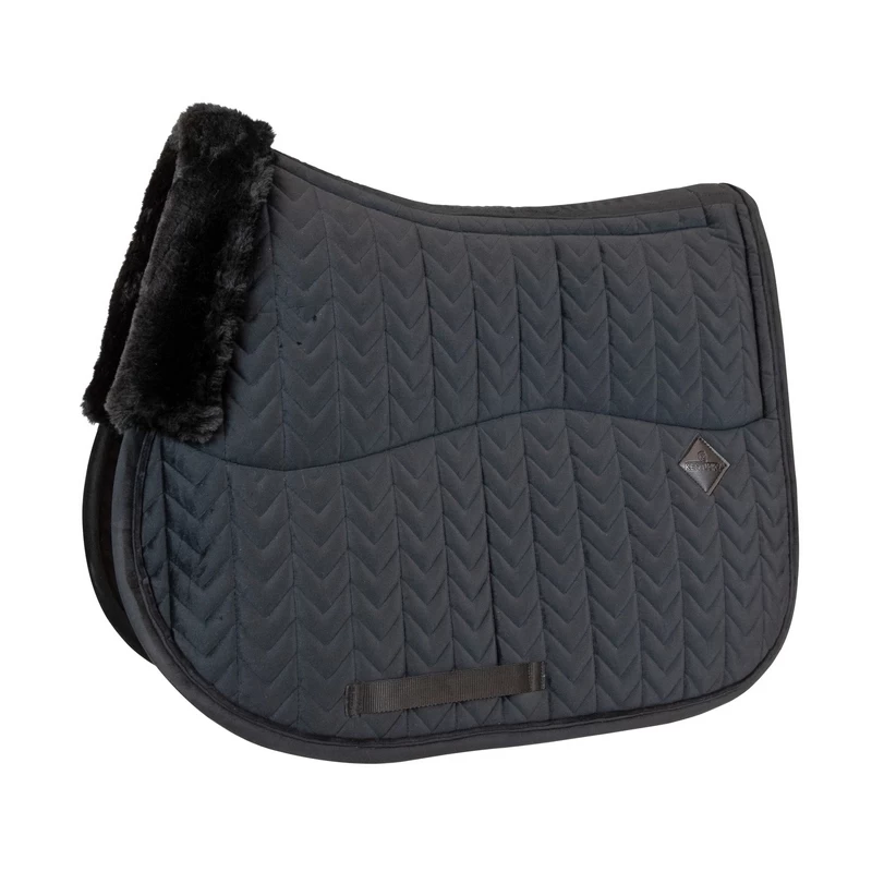 The skin friendly velvet saddle pad is available in jumping and dressage shapes.