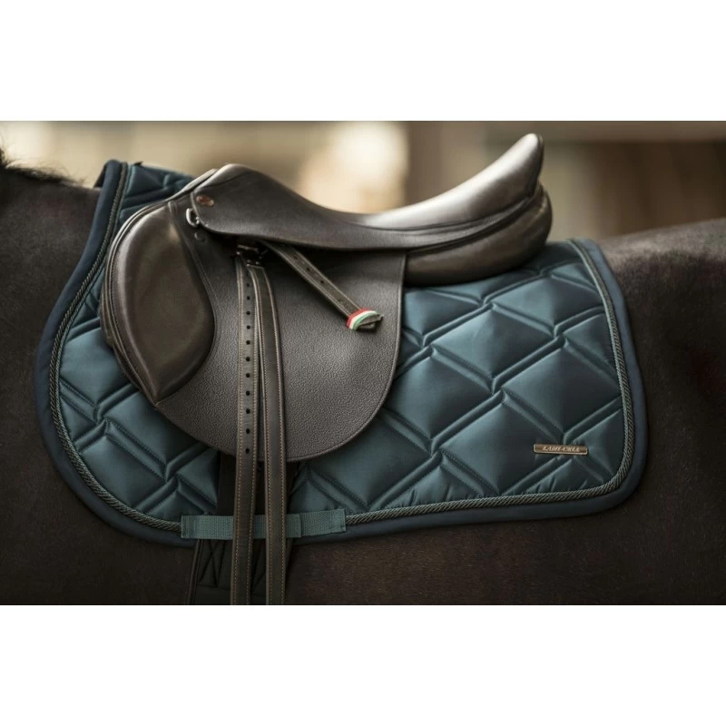 Saddle pad Aurora has a nice anatomical fit with a chic satin look. The inside has a special quick-dry lining and the saddle pad is finished with chic cords.