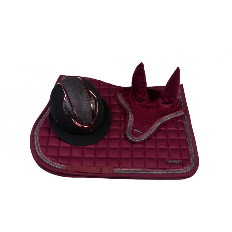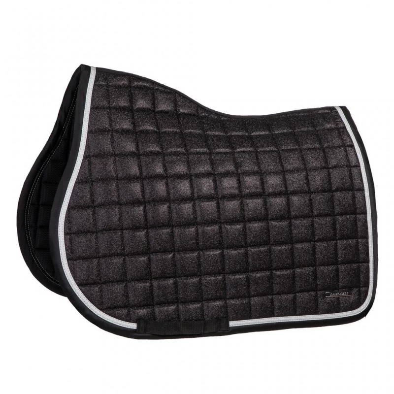 Luxury anatomically shaped saddle pad with luxurious sparkling details. The saddle pad has a glittery exterior and elegant decorative piping. Airflow quid-