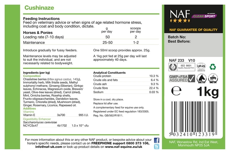 Designed to support vitality, provide nutritional support of the pituitary gland and optimise gut function. Cushinaze is unique, as it combines key herbal elements known for supporting the pituitary gland, including Chasteberry, with essential nutritive support of the whole horse.