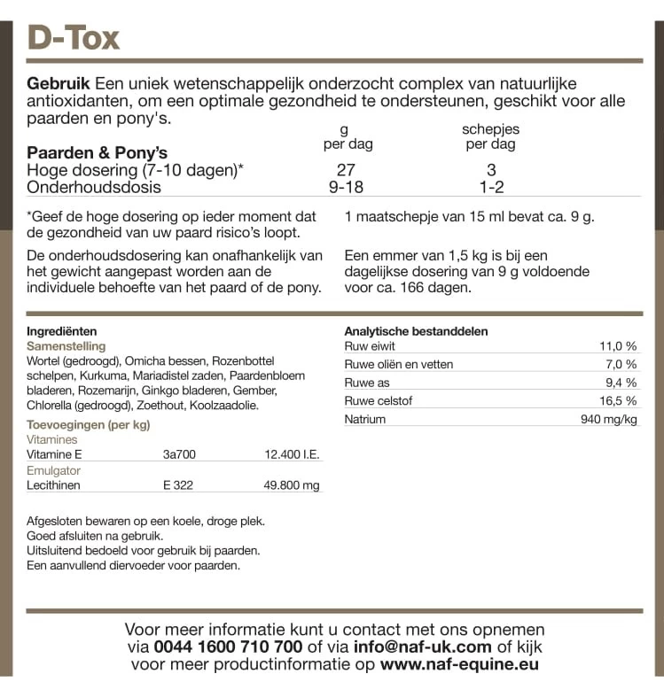 natural equilibrium. Fed at a lower maintenance level, D-Tox can be particularly