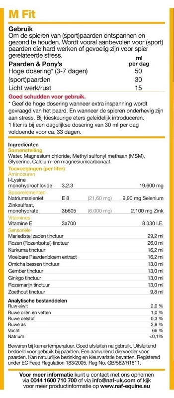 Add M Fit to the daily diet of your (sports) horses to keep your muscles healthy in a natural way. Contains only nutrients known for their beneficial properties. M Fit for healthy muscle function, activity and recovery without extra energy. Keep Your Horse M Fit