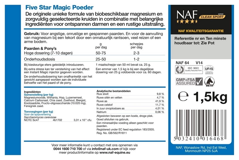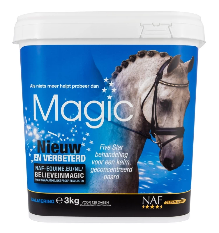The unique blend of magnesium and herbal support of Magic enables the horse to tackle all that is asked of it, calmly and confidently. Note: NAF are pleased to confirm that the magnesium used in Magic does not contravene FEI rules and is safe for use in all horses.