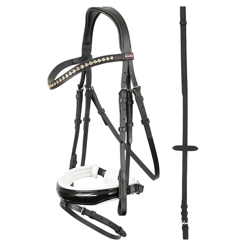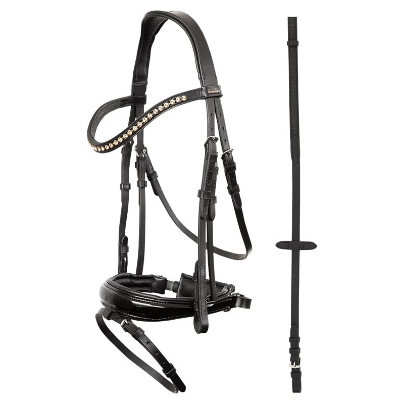 The Premiere bridle Brest is made of soft, supple leather and is anatomically shaped, which ensures a good fit and optimal comfort for the horse.