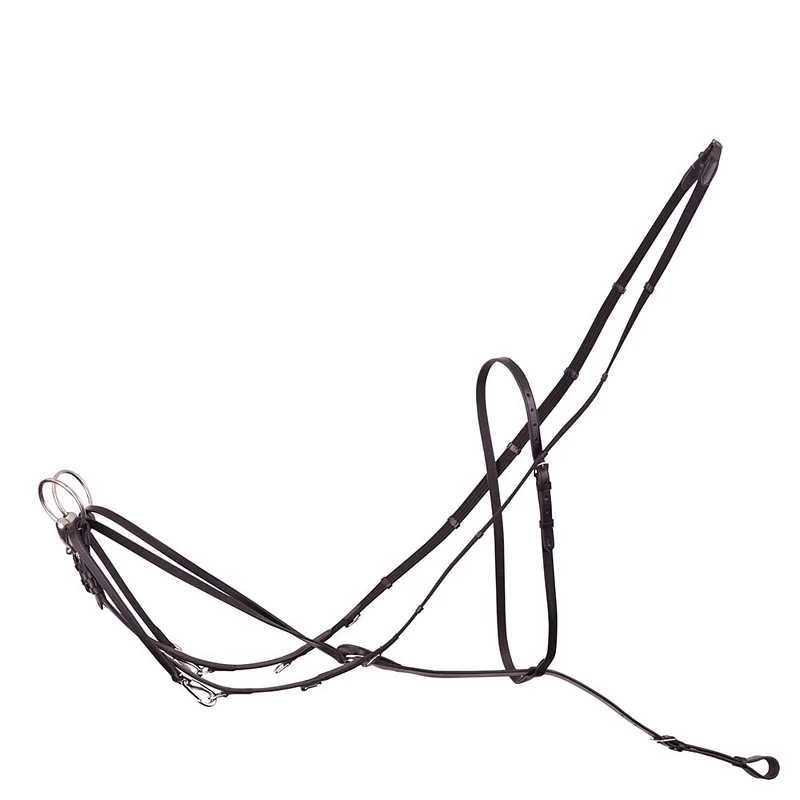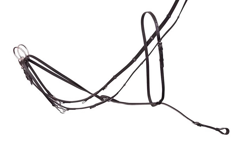 and leather ends (16 mm) with buckles. The rein has three D-rings stitched on