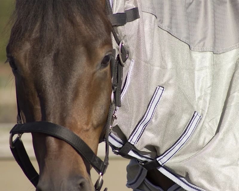 This fly sheet features a waterproof topside which keeps the back and neck of the horse dry when it rains. The sides of the rug are made of a mesh fabric which makes this rug also suitable to wear on warm days. In short, a rug which can be use the whole summer season.