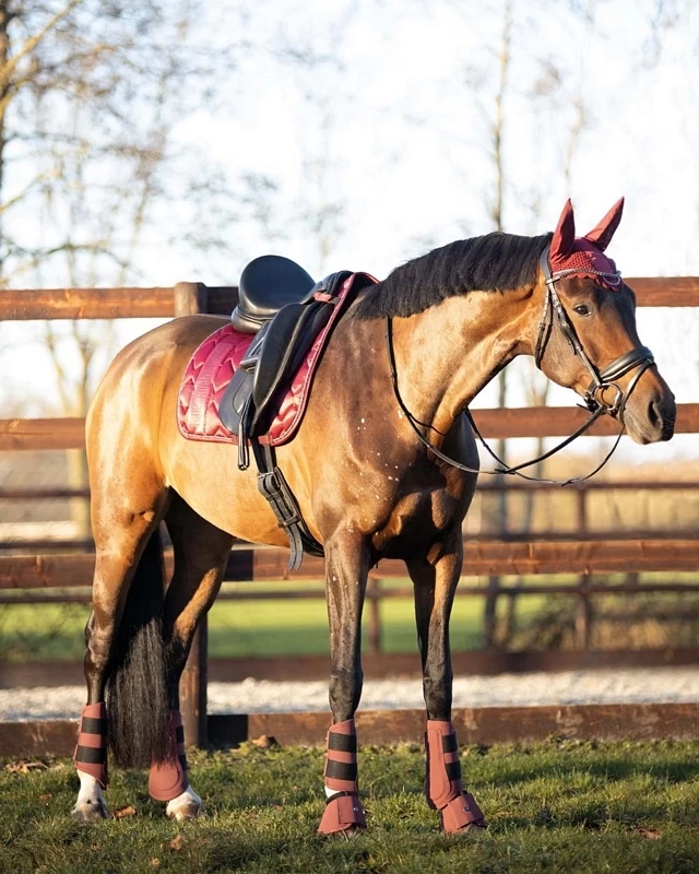 These bell boots complete your entire Phoenix set. Bell boots take the impact of the hind legs and protect the coronet and hoof balls. The airflow neoprene liner breathes well and dissipates heat and moisture. The ‘Q’ pin gives the protectors a chic touch.