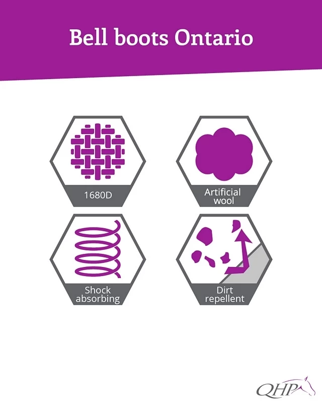 Strong 1680D bell boots with a soft imitation fur trim at the top. The neoprene lining absorbs rear leg impacts and protects the coronet and heel bulbs. Can be attached with a double velcro closure.