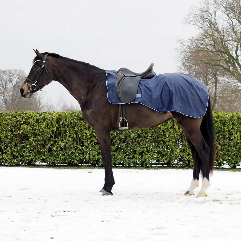 This fleece lined rug is perfect to use during a warm up or cool down to prevent the horse from cooling off too quick. The rug is water repellent and closed with Velcro on the withers.
