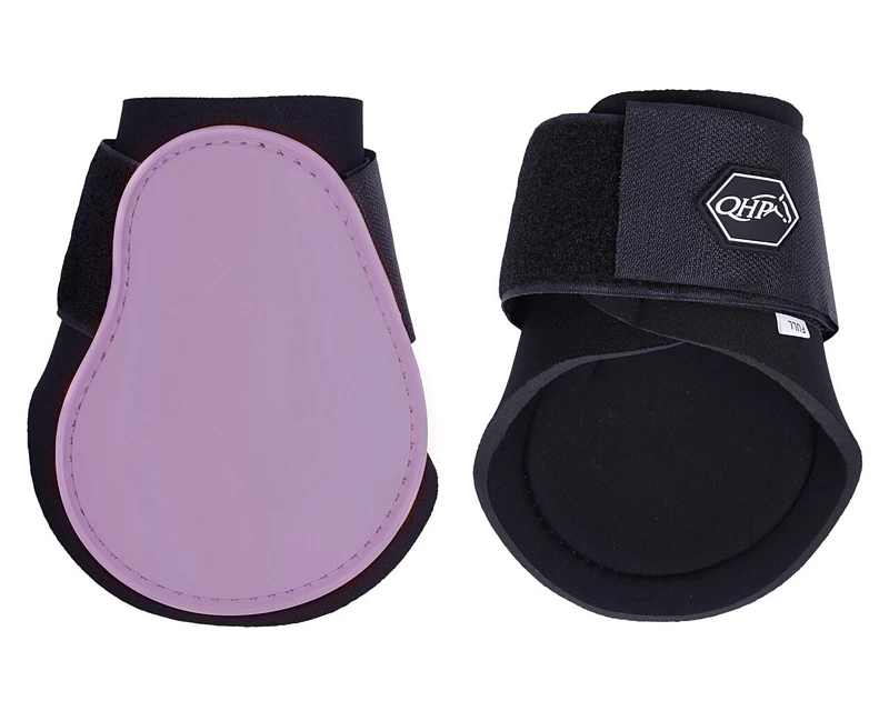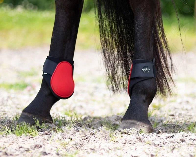 Set of two open fetlock boots with a hard shell and neoprene lining. With Velcro closure. Protects the horse’s legs against shocks and hits. Available in many colours.