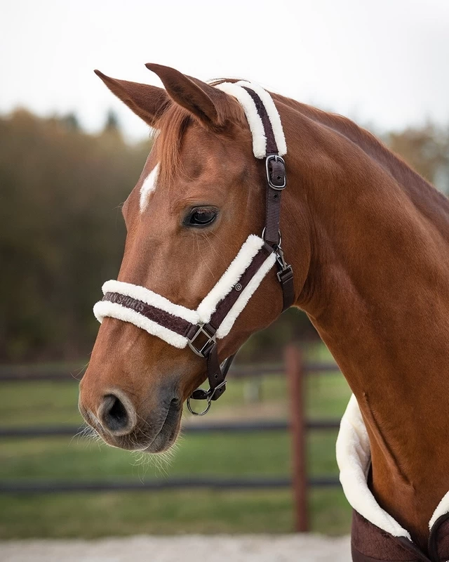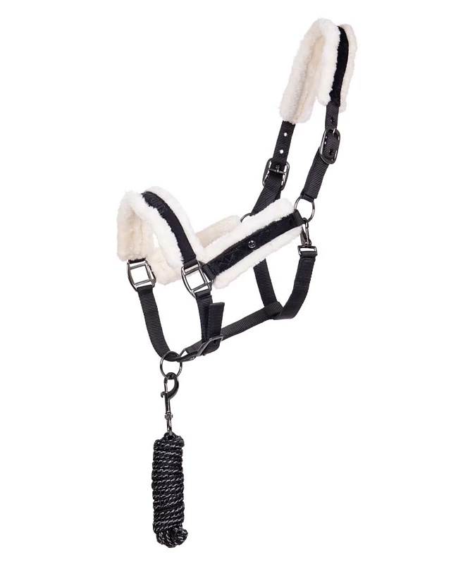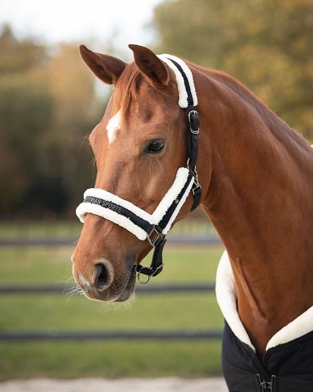 The head collar set Julin, you need this one! Super soft head collar that will make your horse very happy. This head collar features imitation fur at the headpiece, noseband and cheek pieces. The head collar has a velvet look and the Q-pin on the side completes the head collar. The lead rope is detailed and