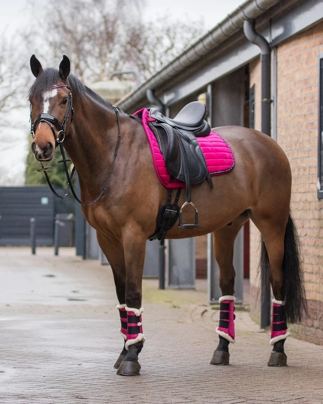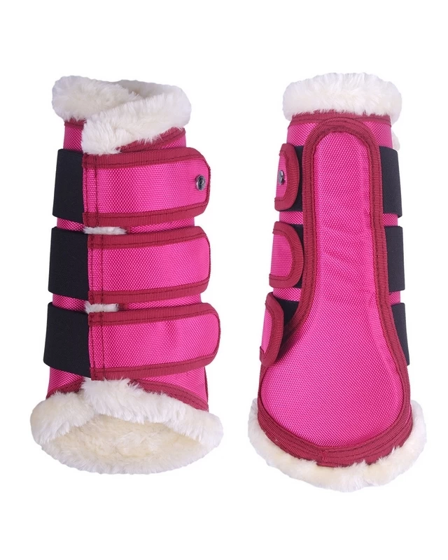 Set of two chic looking, supple leg protecor that can be used for both the front and the hind leg. The protector has a soft imitation fur lining and elastic velcro fasteners. The inside is reinforced so that the leg is well protected against being hit.