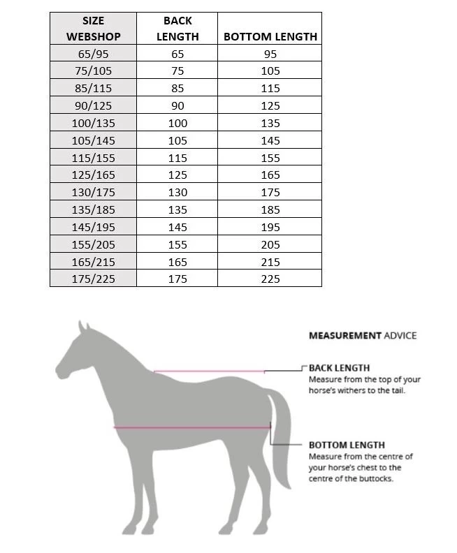 The horse in the pictures is wearing size 195. Take a look at the size chart for more information.
