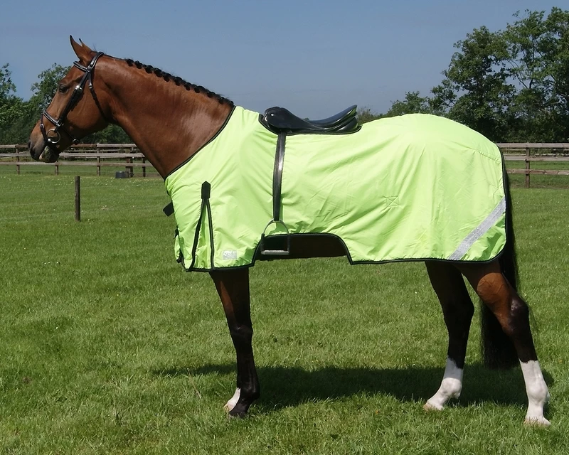 An exercise sheet is perfect to use during a warming up or cooling down to prevent the horse from cooling down too quickly. This rug is also perfect for riding in the dark, you’ll be perfectly visible due to the reflective fabric. The rug covers the entire horse and can be closed at the chest with Velcro closures.