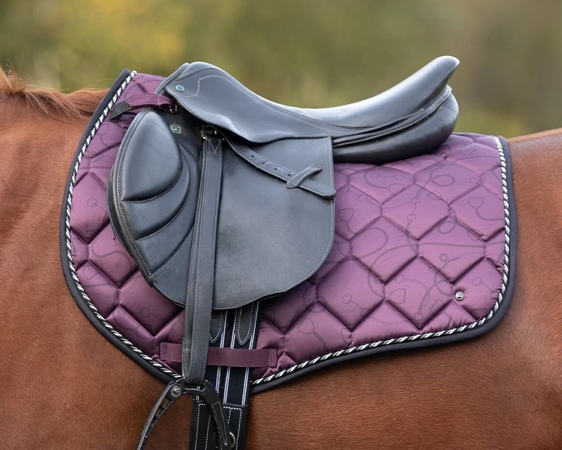 Ready for your next training with the saddle pad from winter collection 23/24. The saddle pad has a nice pattern and is finished with a decorative cord all around. The saddle pad has girth loops and short saddle loops with hook-and-loop