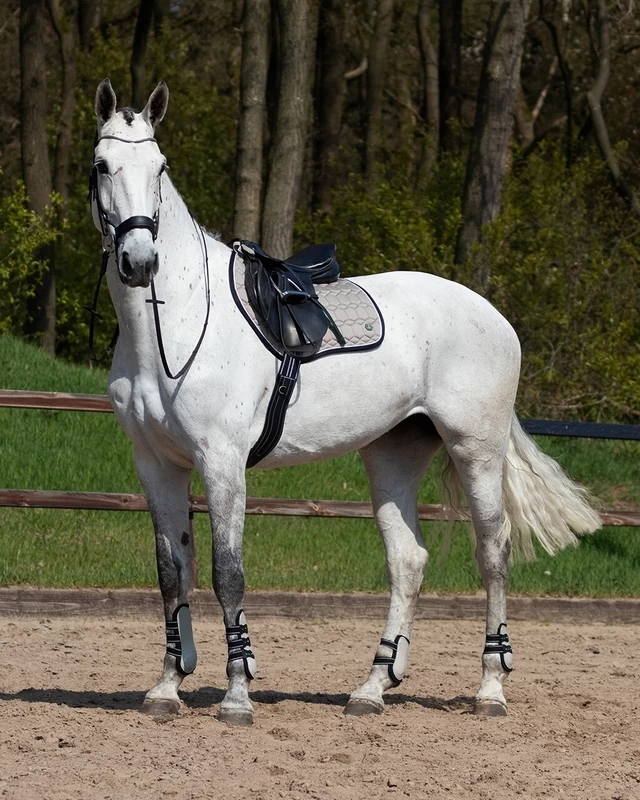 Saddle pad Eldorado is anatomically shaped . The All Purpose pad is adjusted to the shape of close contact jumping saddles which are used frequently during eventing. The pad is also good to use on other jumping saddles. The absorbing homeycomb fabric absorbs sweat well.