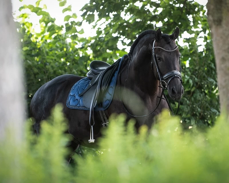 The Lily collection for your frieze horse! The stitched pattern in the form of pompeblêden give the saddle pad a luxurious look. The decorative cord with the rhinestones finish the look.