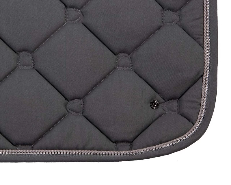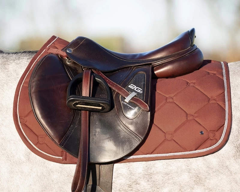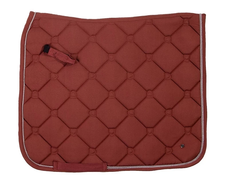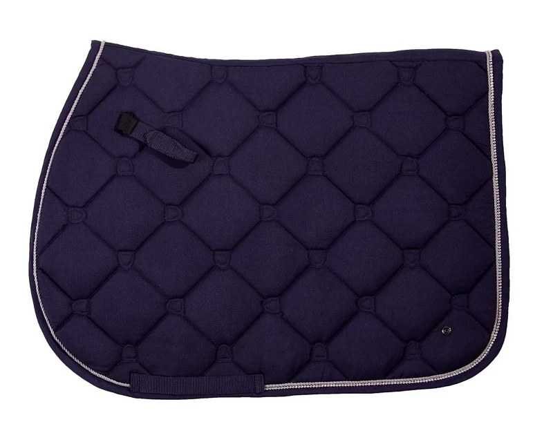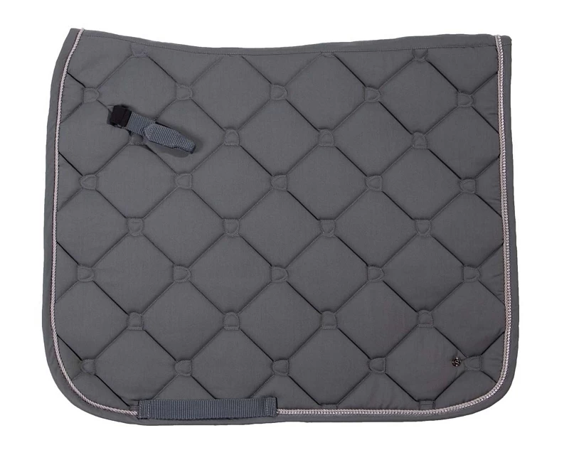 Saddle pad Phoenix is a pad with a decorative cord and an anatomically shaped back. Small stirrups are incorporated into the saddle pad for a sporty look. The saddle pad has girth loops and short saddle loops with hook and loop fastener. This keeps the saddle pad well in place.