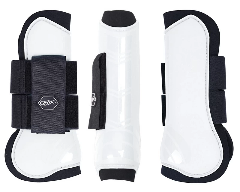 Set of two tendon boots with a hard shell and neoprene lining. With Velcro closure. Protects the horse’s legs against shocks and bumps. Available in many colours.