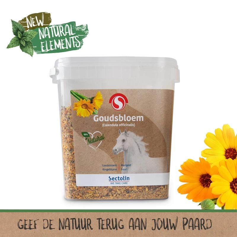 Dried flowers and leaves of Marigold. Marigold supports a good digestion.